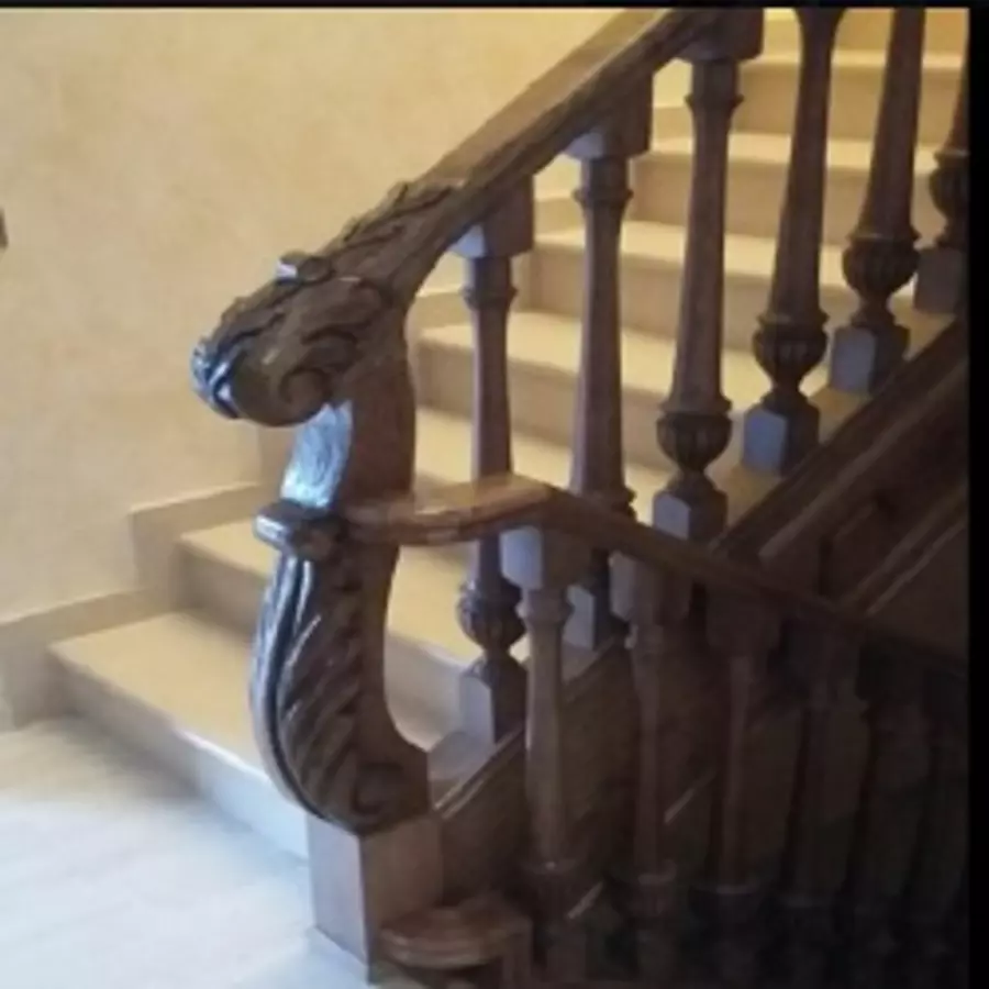 Barandillas de escalera y pasamanos. Torneros de madera. Carpintería. Pasamanos. Maderas.