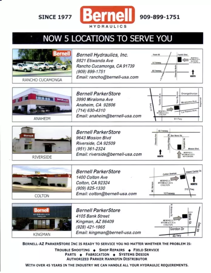 Parker Store - Bernell Hydraulics, Inc. (Colton) Gespecialiseerde markten