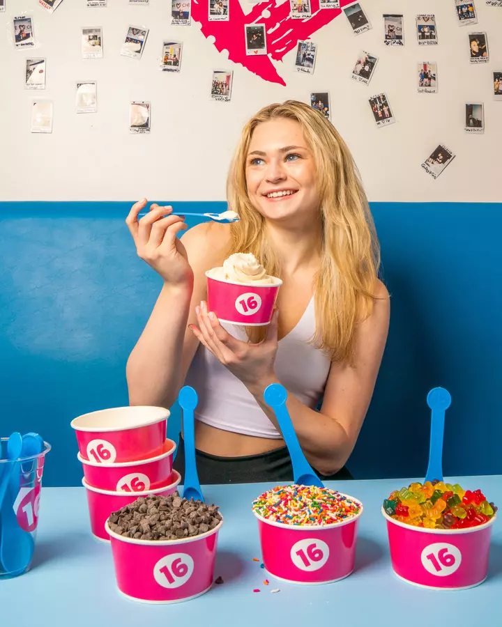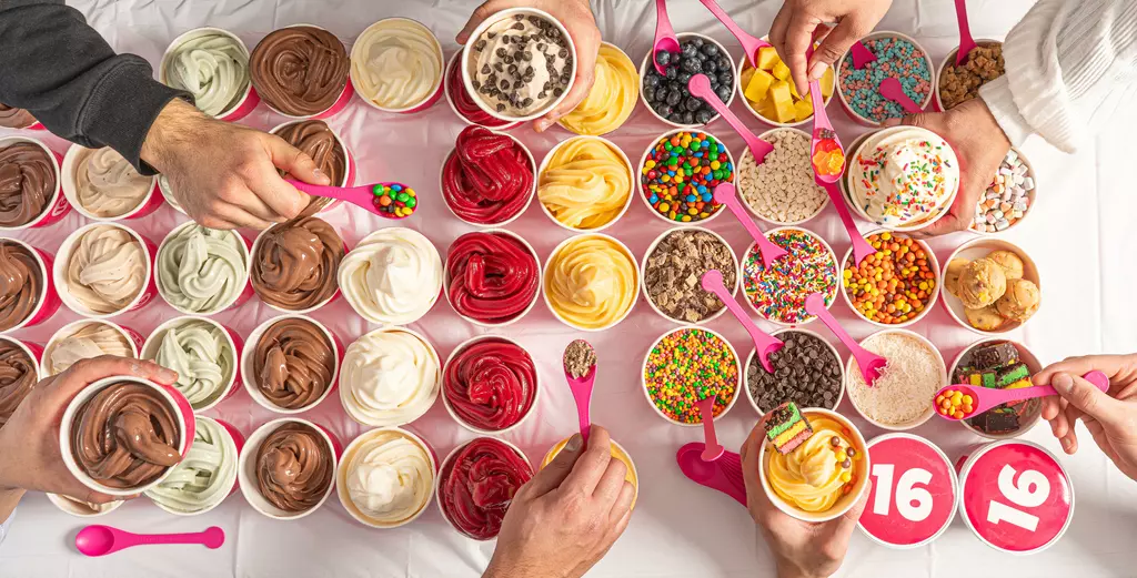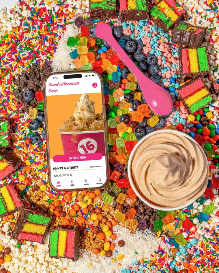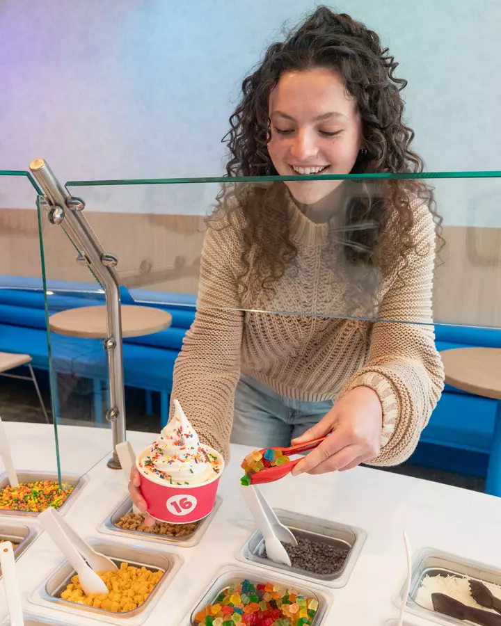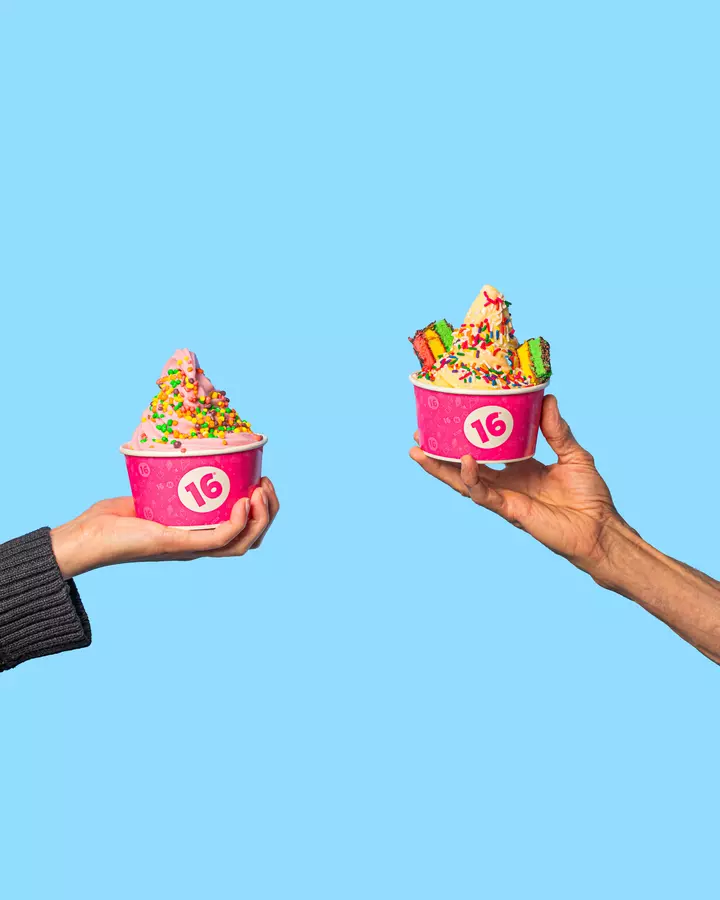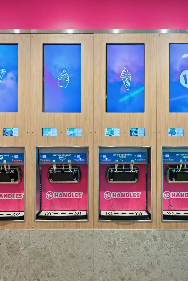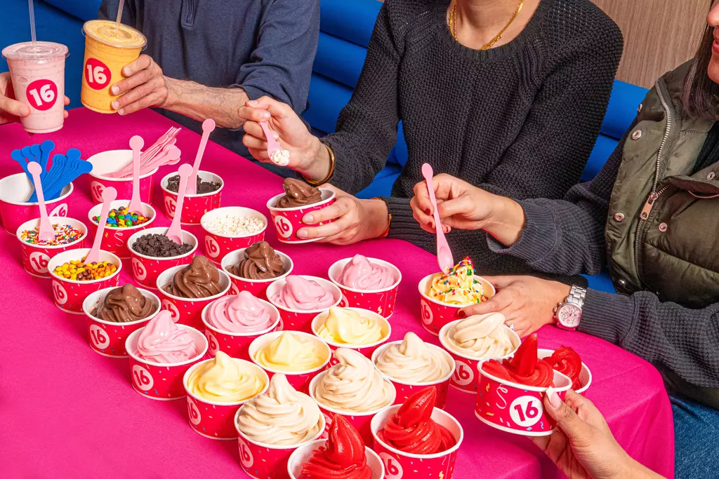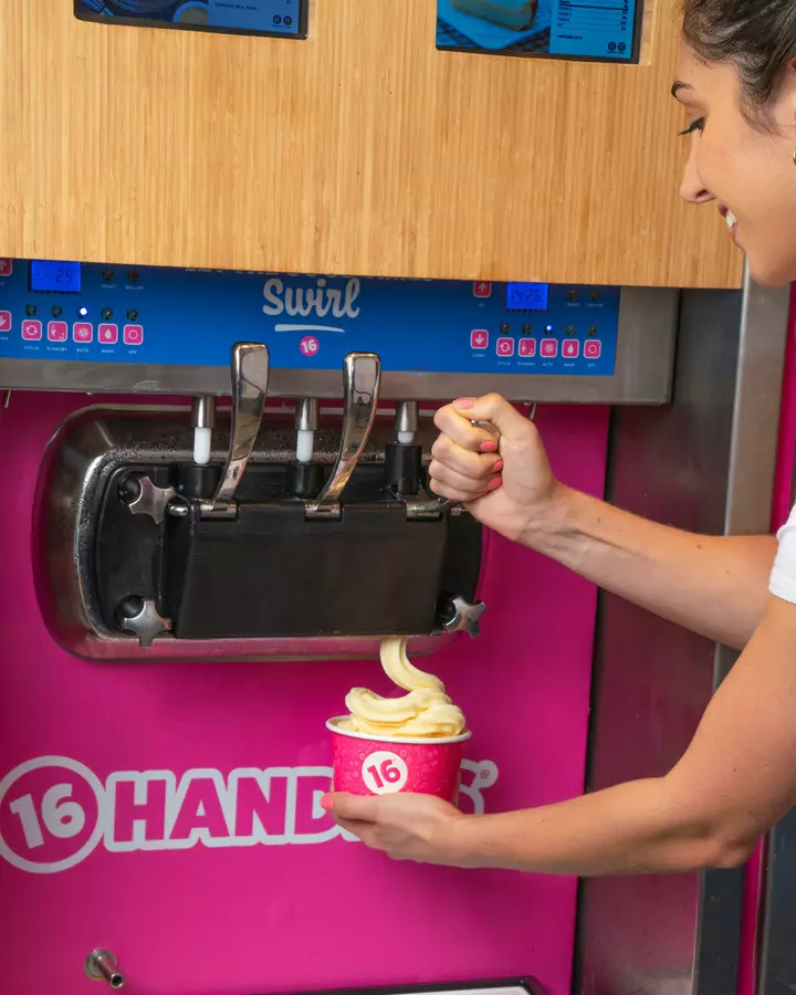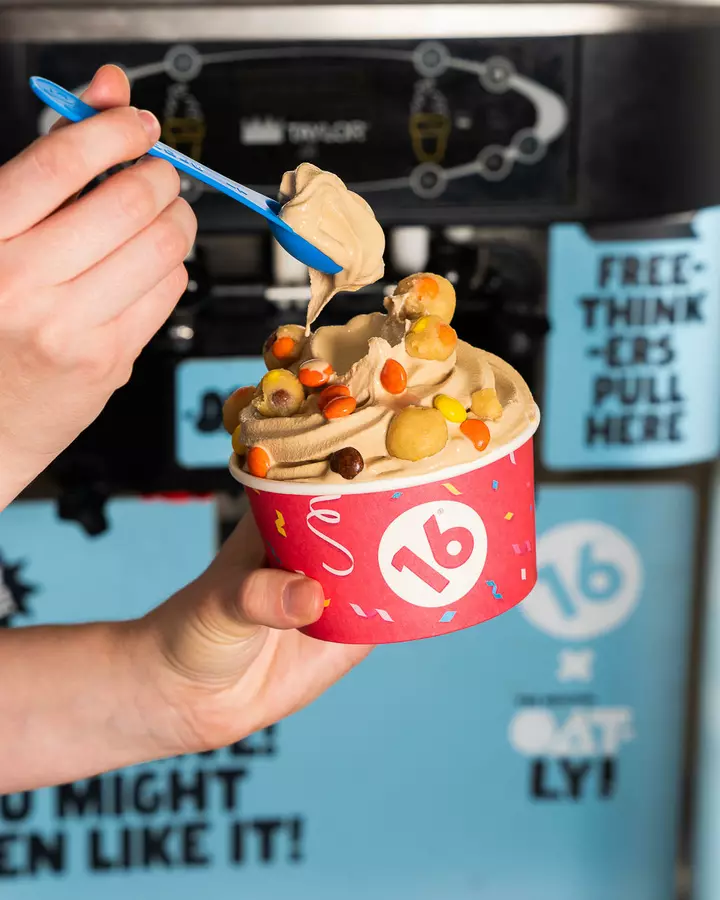 16 Handles is a dessert shop offering a rotating menu of Artisan frozen yogurt, ice cream, vegan soft serve, and other treats plus an endless toppings bar. Also serving smoothies, Acai Bowls, and Bubble Refreshers.