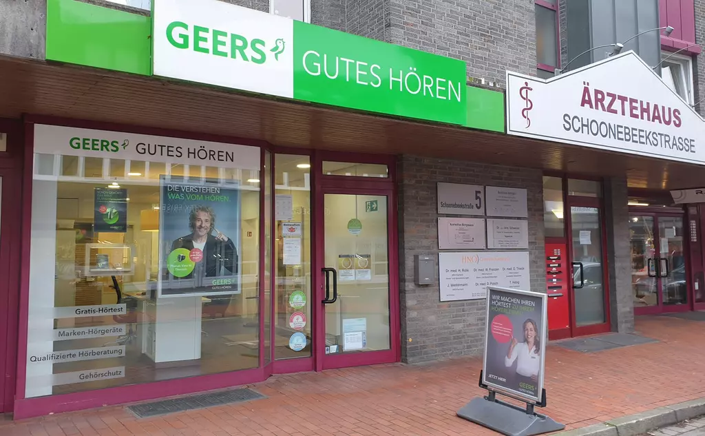 Willkommen bei GEERS in Georgsmarienhütte. Mit rund 750 Fachgeschäften und über 70 Jahren Erfahrung sind wir die Nummer 1 der Hörakustiker in Deutschland. In unseren Fachgeschäften steht die Hörgesundheit im Mittelpunkt. Wir sind spezialisiert auf die Beratung und individuelle Anpassung von Hörgeräten. Dank jahrzehntelanger Hörakustik-Expertise und eines umfangreichen Angebots innovativer Hörsysteme finden wir für Sie die richtige Hörlösung. Bei uns erhalten Sie alle Informationen und Produkte rund um das Thema Hören und bieten Ihnen folgende Services und Produkte: Kostenloser Hörtest, Hörgeräte Beratung, Probetragen von Hörgeräten, Hörgeräte Zubehör, kostenlose Wartung, Reinigung und kleine Reparaturen des Hörgerätes und Gehörschutz.