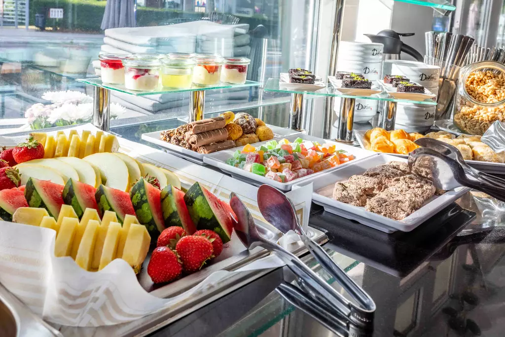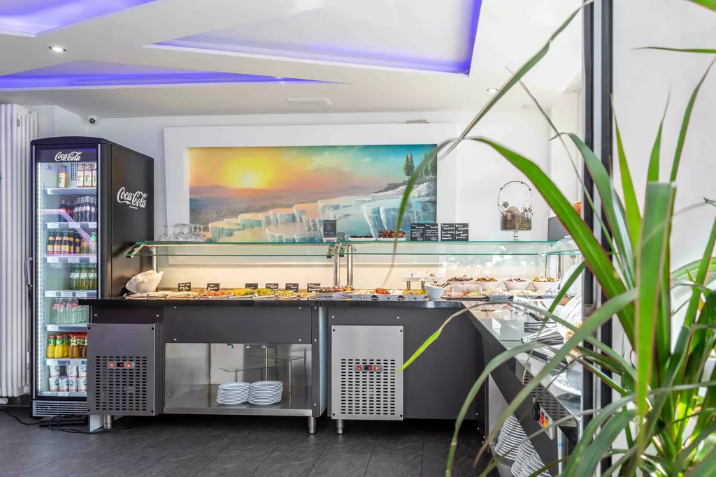 Täglich mit unseren frischen Backwaren, Baklava und reichhaltigem Frühstücksbuffet der keine Wünsche offen lässt.
