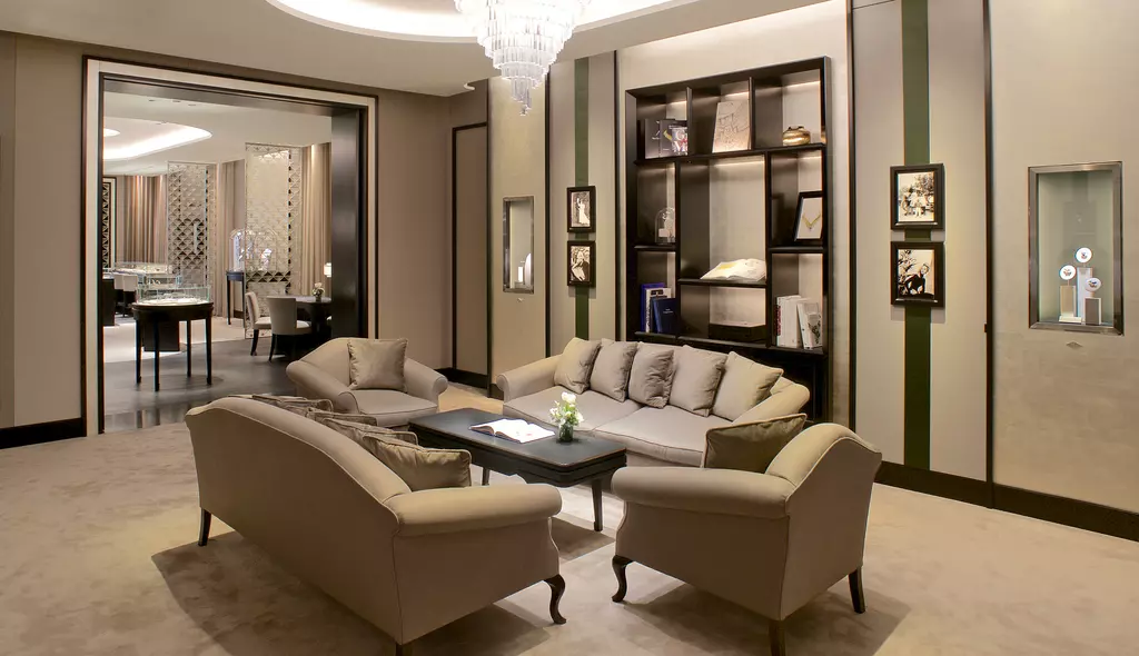 Van Cleef & Arpels has opened its first precious case in Germany in the historic district of Munich. The boutique, lit by natural light, is revealed in shades of beige and white contrasting with black Art Deco-inspired furniture and panels accented with gold leaf. This refined decor reflects the elegance of the Maison's Jewelry and Watch collections.