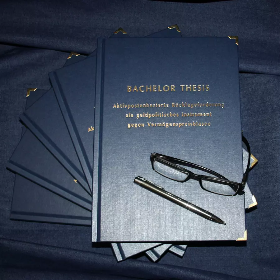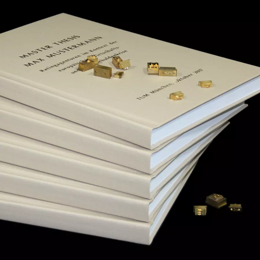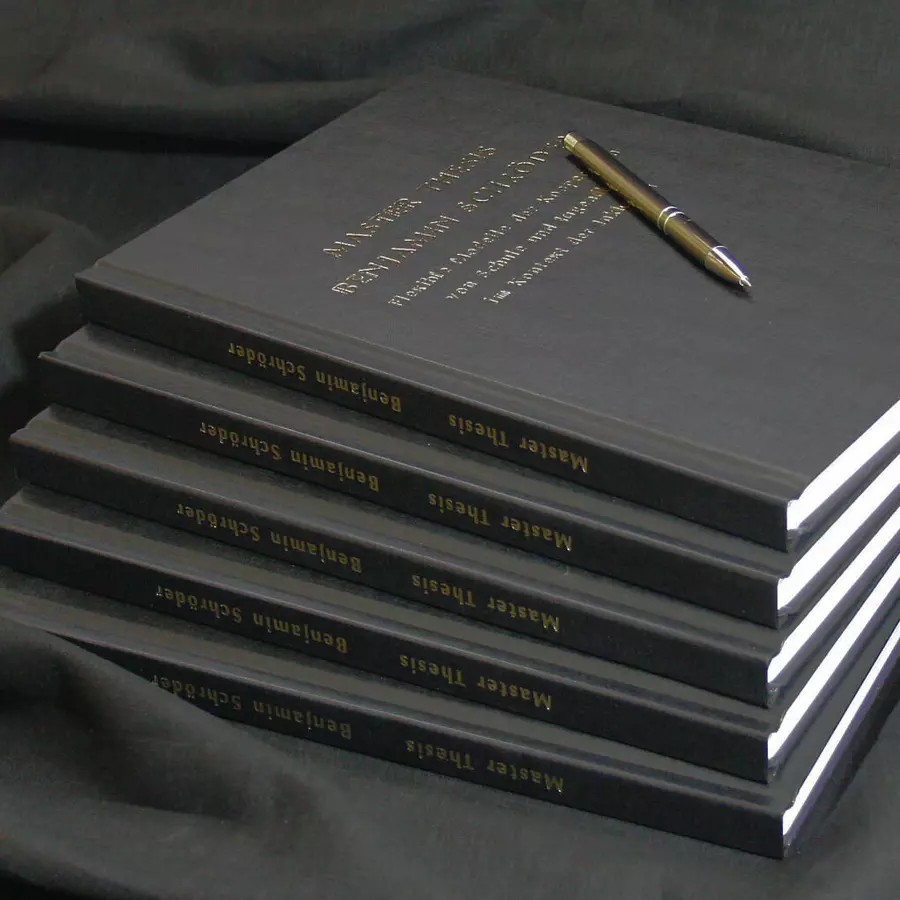 Drucken und Binden von Masterarbeit, Dissertation, Bachelorarbeit etc. Vor bereits 15 Jahren hat sich copyservices mit seinem Ableger diplomaservices auf die Anfertigung wissenschaftlicher Abschlussarbeiten spezialisiert. Hieraus resultieren bereits über 40.000 angefertigte Exemplare, eine garantierte Anfertigungszeit von nur zwei Stunden unabhängig von Anfertigungsmodalitäten oder Terminen, diverse Hardcover-Konfiguratoren (jetzt sogar in 3D), eine Online-Kalkulation und -Beauftragung speziell für Abschlussarbeiten sowie ein Farbseitenzähler für Vorlagendateien. Unsere stets vorab ermittelten Preise sind ebenso verbindlich wie die zwei Stunden Anfertigungszeit, die Materialqualität entspricht dabei immer dem jeweiligen Premiumsegment.