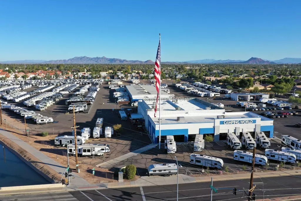 Visit Camping World in Mesa, AZ, your trusted RV dealer near Phoenix. Whether you're shopping for a travel trailer, fifth wheel, or motorhome, our RV dealer offers a wide selection from top brands that will fit your needs. We provide RV financing, trade-in options, and full RV service and collision repair to keep you road-ready. While you're here, visit our camping supplies store to get stocked up on any supplies you need for your next adventure. Conveniently located near US-60, Camping World of Mesa proudly serves RVers from Arizona and beyond. Whether you're a weekend warrior or a full-time traveler, the call to roam lives in all of us.