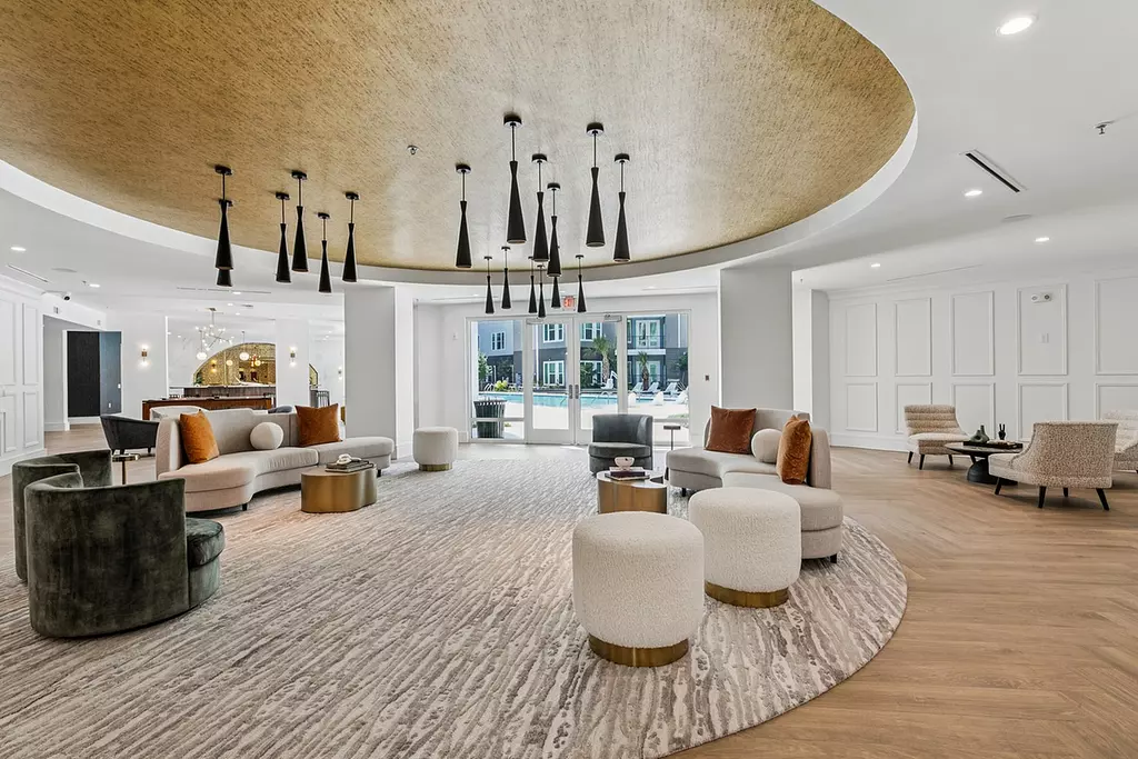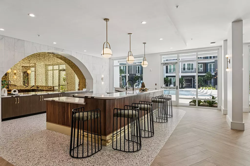 Residents enjoy elevated community spaces including a resort-style pool, a club-quality fitness and yoga studio, and a stunning 5th-floor sky lounge with city views.