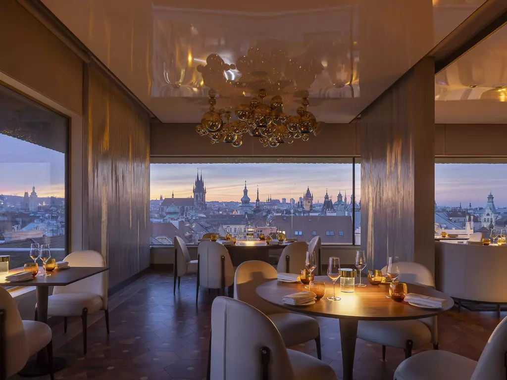 Zlatá Praha fuses modern flair with traditional Czech flavors to showcase seasonal produce and heritage dishes through a contemporary lens. Intimate seating lit by golden chandeliers frame spellbinding rooftop views of Prague. Booking ahead is essential.