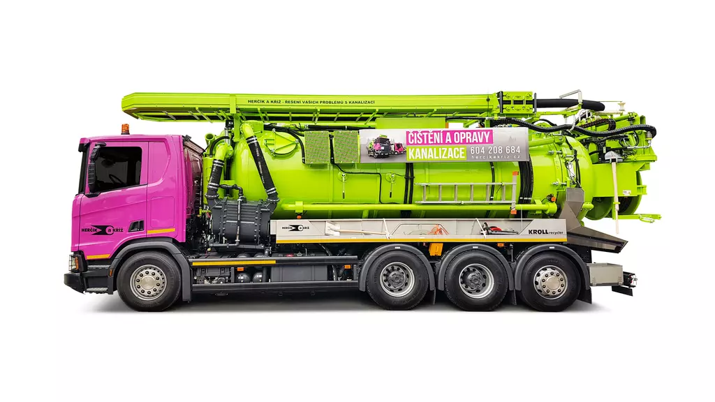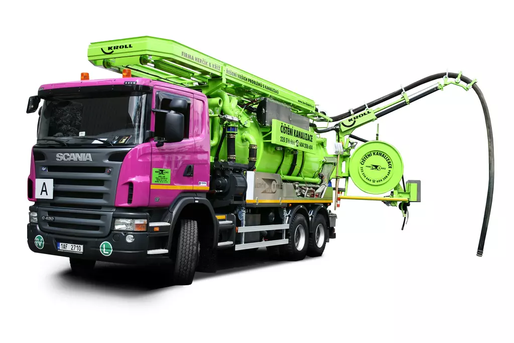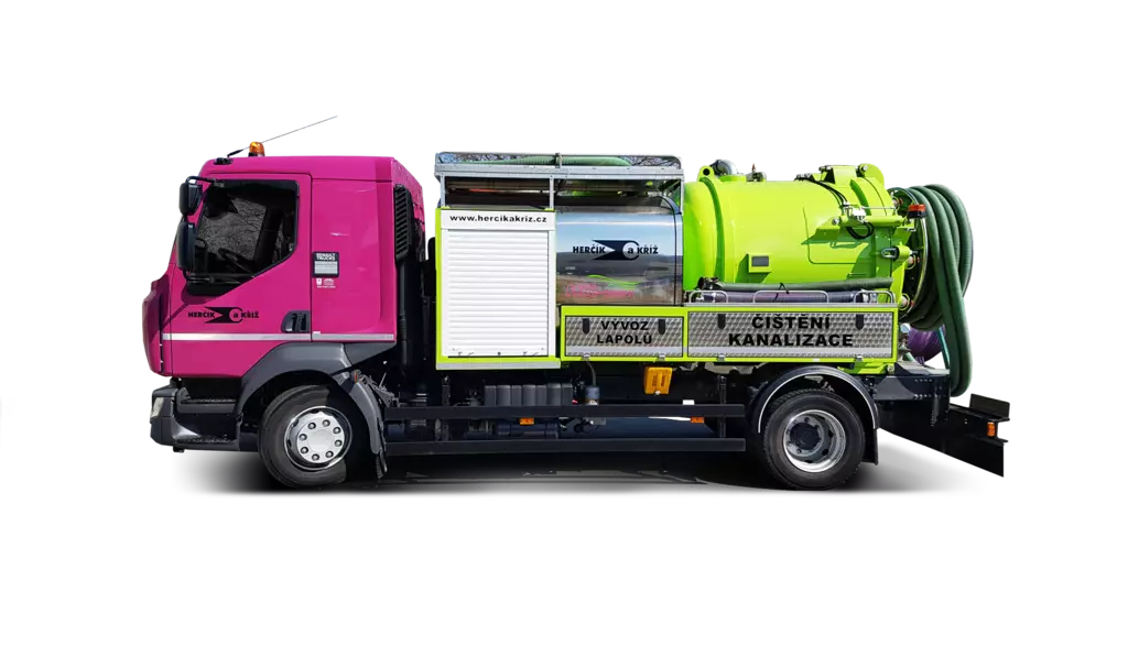 Dále jsou vám k dispozici výkonné sací vozy pro odvoz fekálií, tukových lapolů, tuhých kalů a to i z velkých dálek a hloubek. Najdete-li v kanalizaci nateklý beton či prorostlé kořeny, dokážeme je vyfrézovat pomocí řízené robotické frézy.