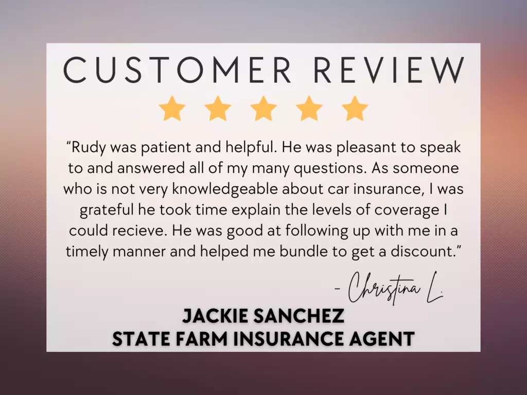 Die Seite "Jackie Sanchez - State Farm Insurance..." wordt beheerd door een agentschap.Neem contact op met uw agentschapspartner om de inhoud bij te werken.
