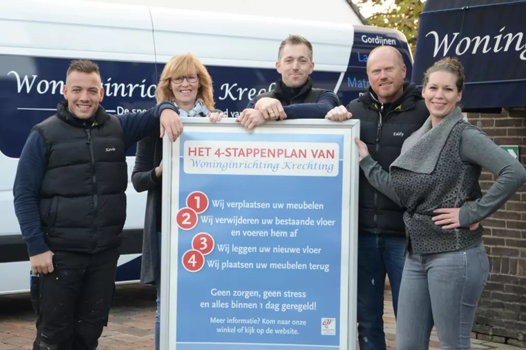 Welkom bij Woninginrichting Krechting. Al bijna een halve eeuw ervaring in woninginrichting. Met een schat aan ervaring op het gebied van woninginrichting runnen wij een prachtige showroom in het midden van het dorp aan de Kerkstraat 77. Hier kunt u alles vinden op het gebied van woninginrichting. Van vloeren, zonwering, raamdecoratie en slaapsystemen tot gordijnen en nog veel meer. Bij Woninginrichting Krechting treft u een uitgebreide keuze in alle prijsklassen, kwaliteiten en kleuren aan. Wij zijn lid van inkoopvereniging Den Brink en belangenvereniging Anbo. Onze producten worden vakkundig door eigen medewerkers gelegd en geplaatst. Wij staan garant voor tevredenheid en kwaliteit. Kom gerust langs voor een kennismaking. De koffie en thee staan klaar en er is gratis parkeergelegenheid naast en tegenover ons pand. Een afspraak, ook bij u thuis, is tevens buiten openingstijden realiseerbaar. Tot ziens bij Woninginrichting Krechting! Eddy & Natasja Krechting