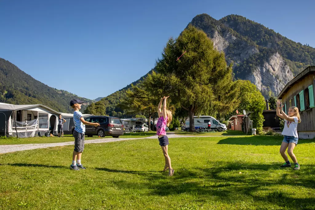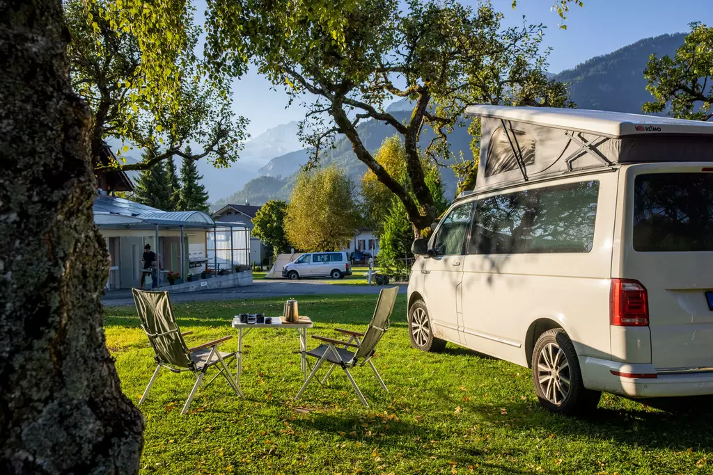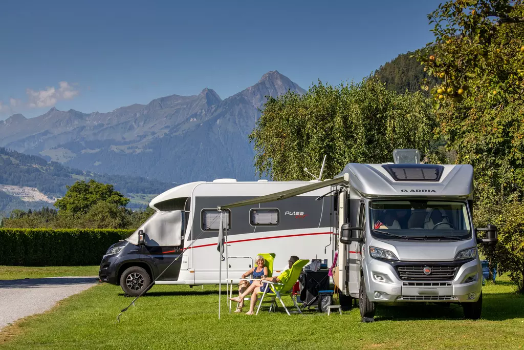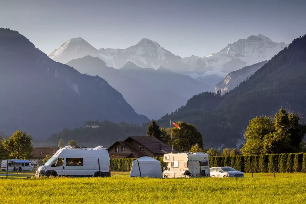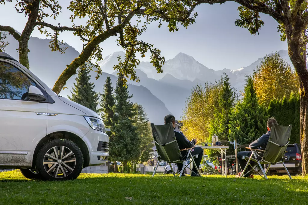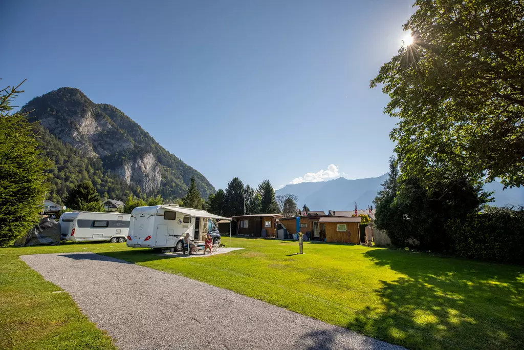 Jungfrau Camping - Planen Sie Ihre Ferien vor dem schönsten Bergpanorama Europas, beim Jungfraucamp in Interlaken. Wir sind ein ruhig gelegener Camping-Platz mit Blick auf Eiger, Mönch und Jungfrau. Erleben Sie Ferien im Zentrum des Berner Oberlands. Geniessen Sie Ihre Ferien mit traumhafter Aussicht auf Eiger, Mönch und Jungfrau. Der ideale Ort zur Erholung für die ganze Familie. Der Campingplatz liegt direkt neben einer Bushaltestelle und ist nur 20 Gehminuten vom Zentrum entfernt. Wir bieten auf ungefähr 2.4 Hektar Gesamtfläche über 100 Stellplätze für Wohnmobile, Caravans und Zelte. Für den nötigen Komfort stehen Ihnen unsere Standplätze wahlweise mit Strom (16 Amp.) und Wasseranschluss zur Verfügung. Alle Stellplätze sind parzelliert und können nach Ihren Wünschen reserviert werden. Nicht nur die gelungene Platzaufteilung macht den Jungfraucamp zu einer Wohlfühloase, bei heissen Tagen sorgen auch unsere Pools für angenehme Abkühlung und laden zum gemütlichen Verweilen ein. Zu den zeitgerechten Sanitäranlagen, bietet der Camping auch einen kleinen Lebensmittelladen, welcher mit seiner vielseitigen Auswahl das Gesamtangebot harmonisch abrundet. Der ideale Ort zur Erholung für die ganze Familie im Herzen vom Berner Oberland. Ihre Gastgeber Carole Werthmüller & Sascha Bieri freuen sich auf Sie.