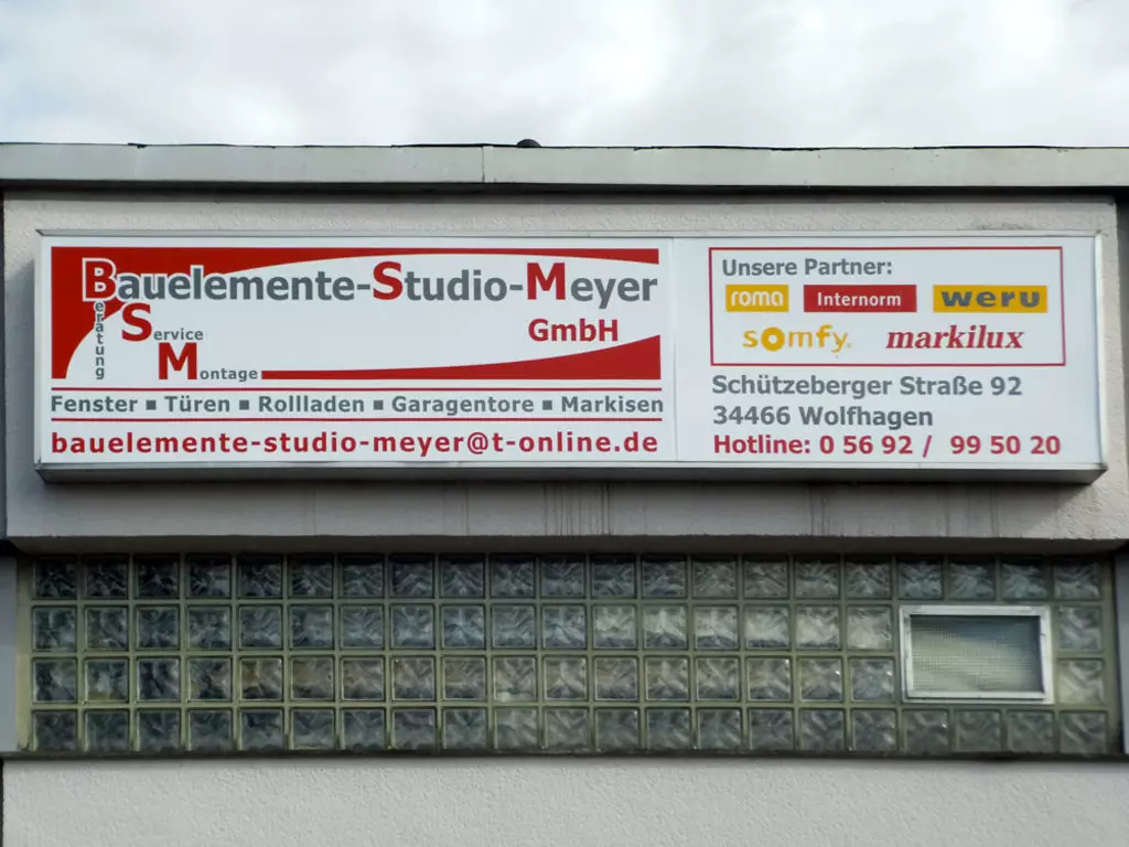 Die Bauelemente-Studio-Meyer GmbH aus Wolfhagen(bei Kassel) ist Ihr kompetenter Partner für energieeffiziente Fenster und Türen aus Kunststoff, Holz und Aluminium. Außerdem erhalten Sie effektiven Sonnenschutz wie hochwertige Rollladen, Raffstores, Textilscreens sowie Markisen und Produkte für die Innenbeschattung. Zum Angebot gehören außerdem Wintergärten und Terrassendächer sowie eine professionelle Montage und ein zuverlässiger Kundendienst nach neuestem Stand der Technik.