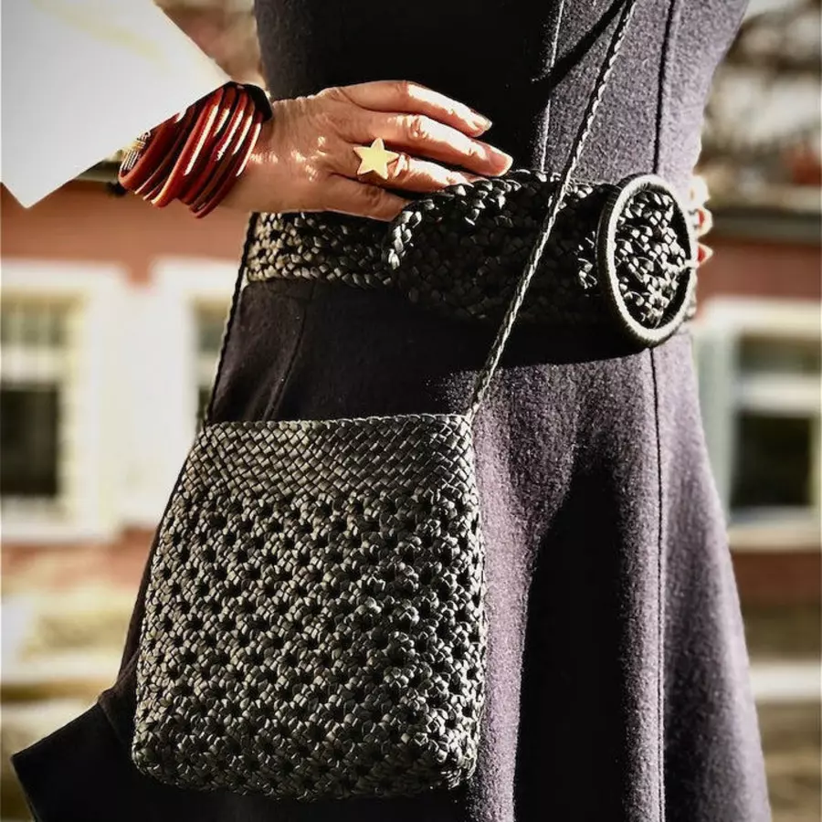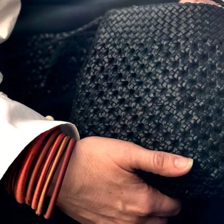 Unser hochwertiges, geschmeidiges Lamm-Nappaleder wird in Marrakech, von Frauen, nach altem Kunsthandwerk, von Hand geflochten.