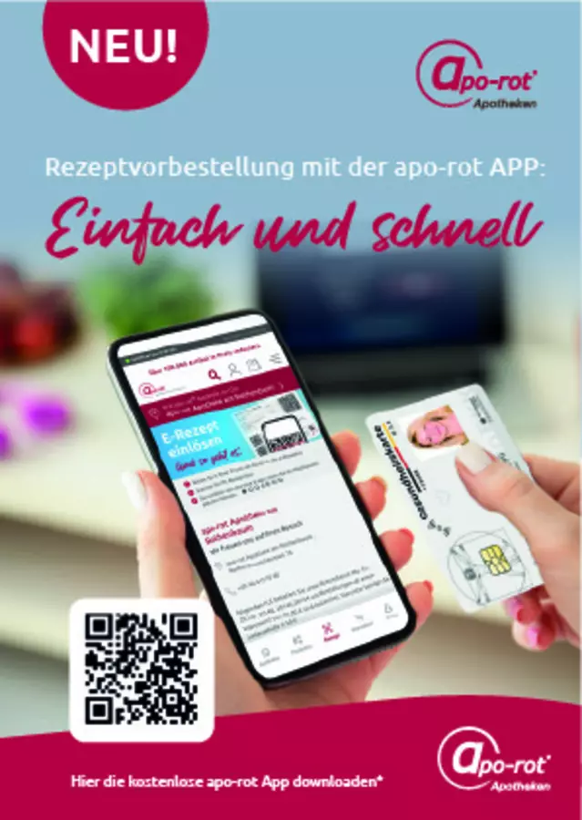 Bei uns stehen Ihre gesundheitlichen Bedürfnisse im Mittelpunkt. Wir möchten, dass Sie sich in unserer Apotheke wohlfühlen und wissen, dass Sie bei uns in kompetenten Händen sind. Ob Impfberatung bei Fernreisen, Antworten zu homöopathischen Fragen oder der Verleih von medizinischen Geräten – unser Serviceangebot deckt Ihre Gesundheitsbelange von A–Z ab. Apo-rot bietet ein umfangreiches Sortiment zu günstigen Internetpreisen auch vor Ort in Zwickau. Nutzen Sie unsere Kompetenz auch online. Die apo-rot App runterladen, Rezept - Button drücken, Gesundheitskarte scannen. Sie sparen doppelte Wege und können Ihre gewünschten Medikamente einfach bei uns abholen. Auf Wunsch auch Botendienst. Noch Fragen, schreiben Sie uns gern eine E-Mail!